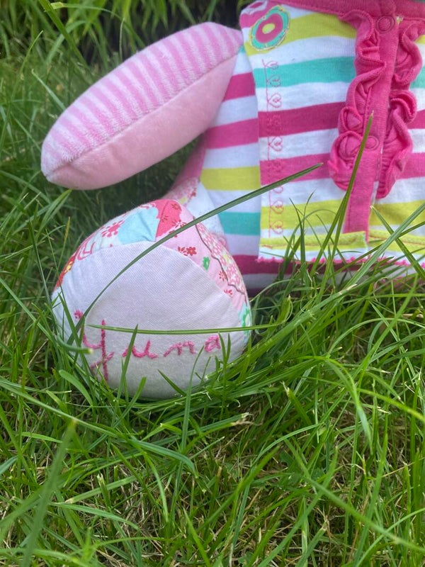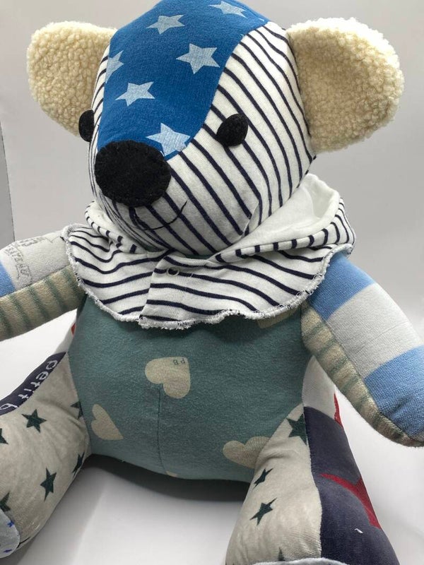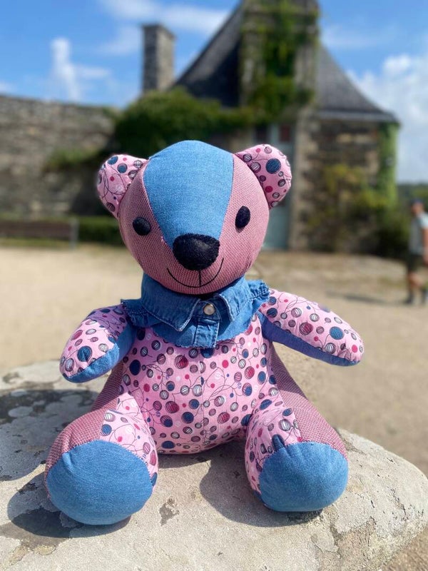 Ours souvenir confectionné à partir de vêtements ayant une grande valeur affective à vos yeux (vêtements bébés, enfants)