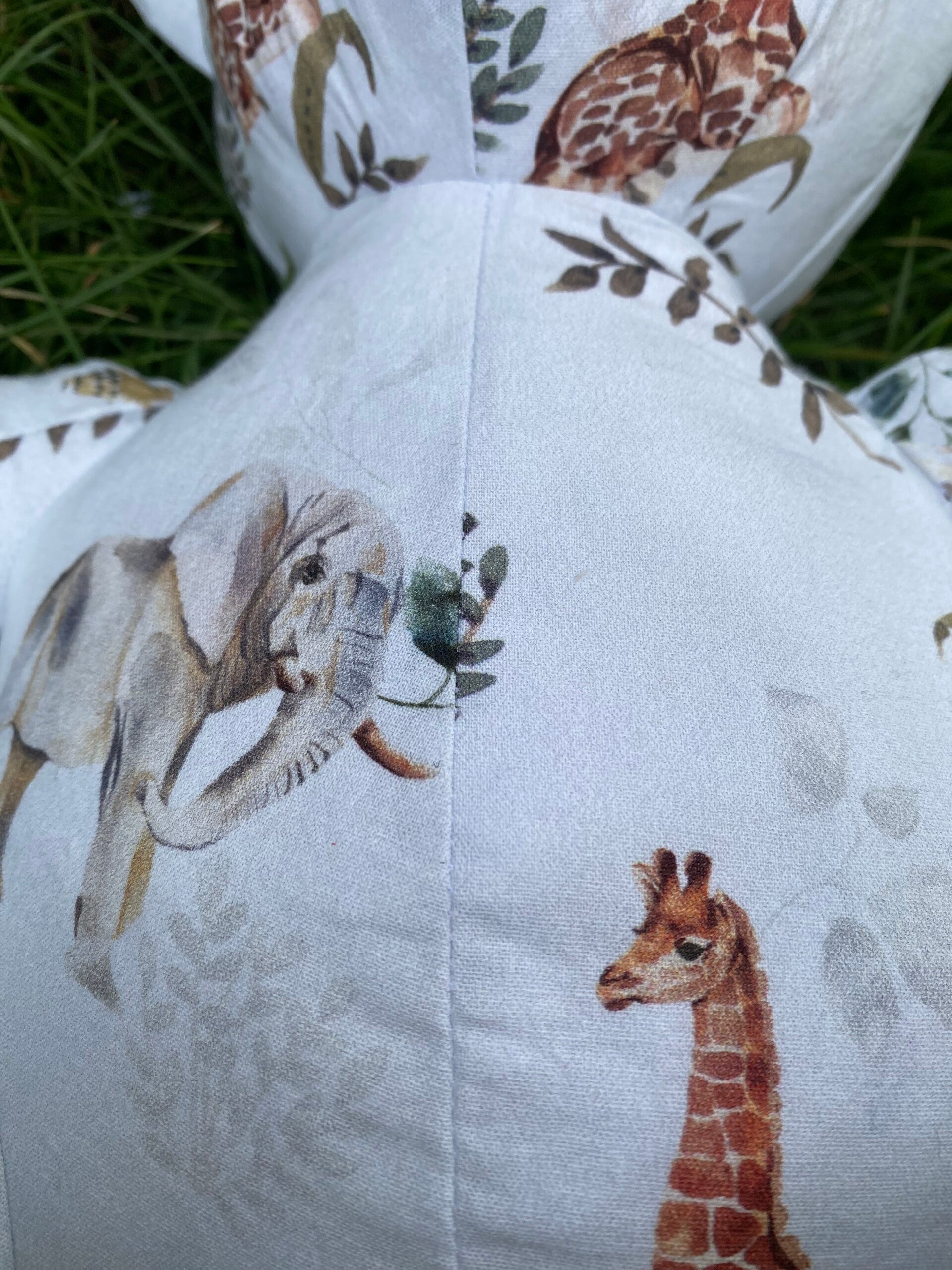 Ours décoratif confectionné à partir de tissus bébé oeko-tex de la marque française Domotex, idéal décoration chambre bébé. Motifs girafe, éléphant, safari, Afrique